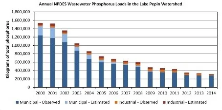 Figure 1. Annual NPDES Wastewater Phosphorus Loads in the Lake Pepin Watershed; Source: Minnesota Pollution Control Agency